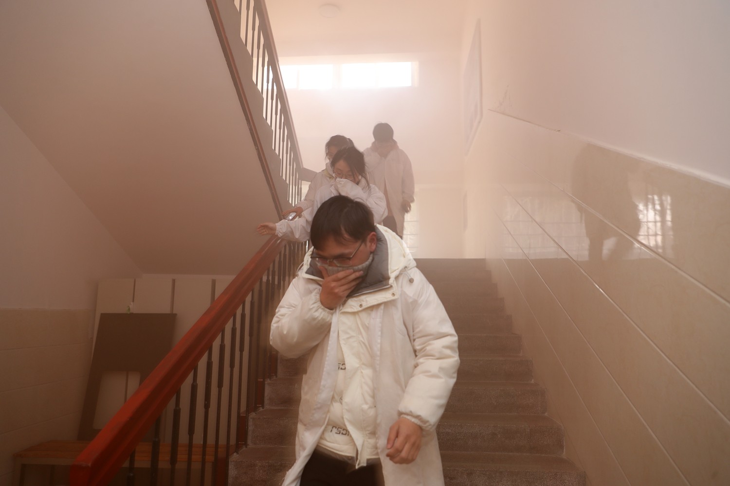 2月26日下午,安阳支队联合高新大队,走进安阳工学院开展消防安全专项演练,此次演练原型是曾真实发生在校园中的氯气钢瓶泄露事件。16时40分,应急逃生演练正式开始,模拟该校化工学院101实验室氯气钢瓶发生泄露,释放出具有强烈刺激性气味的黄绿色有毒气体。实验中心人员发现后,立即拨打119报警,并组织师生紧急疏散至安全场所的上风位置。
