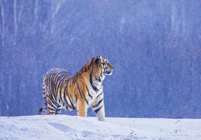 东北虎主要分布在东北亚地区,包括俄罗斯远东地区、中国东北部以及朝鲜。其中,俄罗斯的阿穆尔河流域被认为是东北虎的主要栖息地。