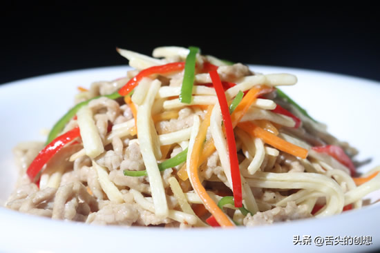 【这道菜很考究厨师的基本功,切肉丝讲究刀功,腌制滑油讲究厨师的码味,与火候。炒肉丝讲究的是肉丝不断,考验锅功。】【肉丝均匀,长短一致,口感鲜嫩不干柴,味道恰到好处,是这道菜成功的三个标准。】