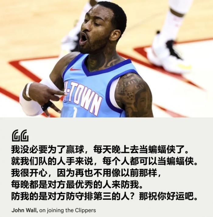 沃尔说,他没必要为了赢球,每天晚上去当蝙蝠侠了,而且,由于莱昂纳德和乔治的存在,对手只能派防守第三的人去防他,暗示自己的进攻可以非常轻松。