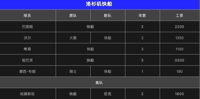 这个夏天,快船阵容做的调整并不大,留下巴图姆、祖巴茨和考菲,放走了替补中锋哈滕斯坦,当然,最亮眼的就是抢到了墙哥沃尔。