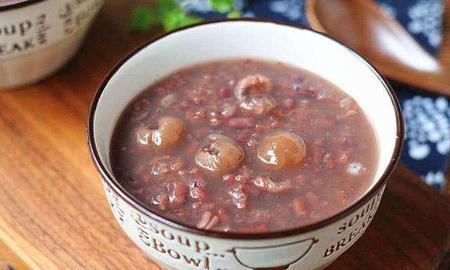 二、糯米红豆桂圆粥:首先把红豆淘洗干净再泡两个钟头,再加水放在锅里煮。红豆煮得有点熟的时候再放洗净的糯米和桂圆一起煮,粥煮好后再加适量红糖搅拌均匀就可以起锅了。