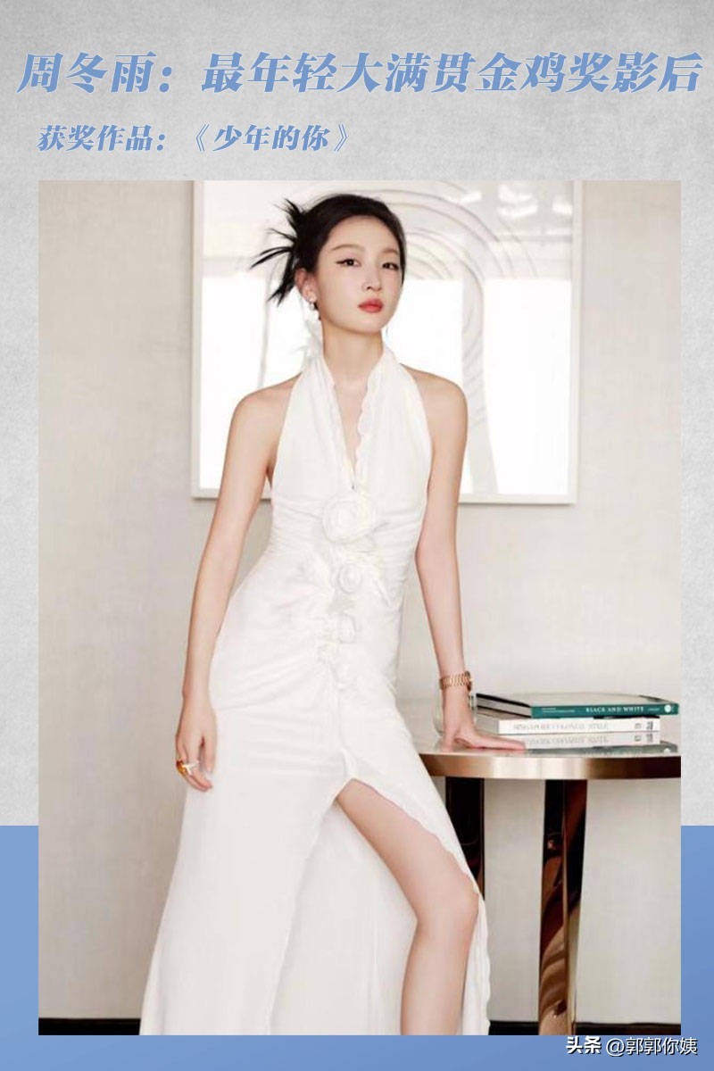 周冬雨凭借《少年的你》中的陈念一角获得金鸡奖最佳女主角奖。通过获奖,周冬雨成为继章子怡和周迅之后第三位获得三枚大满贯金牌的女演员人,也是获得90枚大满贯奖牌的最年轻的人。周冬雨前途光明!
