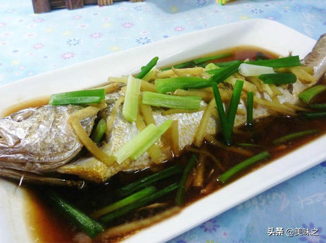 黄鱼1条、姜丝适量、葱段适量、调味汁适量、料酒适量、盐适量。