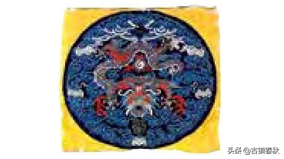 官服上缀绣的补子是识别官员等级的一种标识。补子分圆补和方补两种。圆补用于贝子以上皇亲者,上为五爪金龙纹,分别饰于左右肩上及前胸和后背。方补均用于文官和武将等官员。文官采用飞禽式样,武官采用走兽图案。