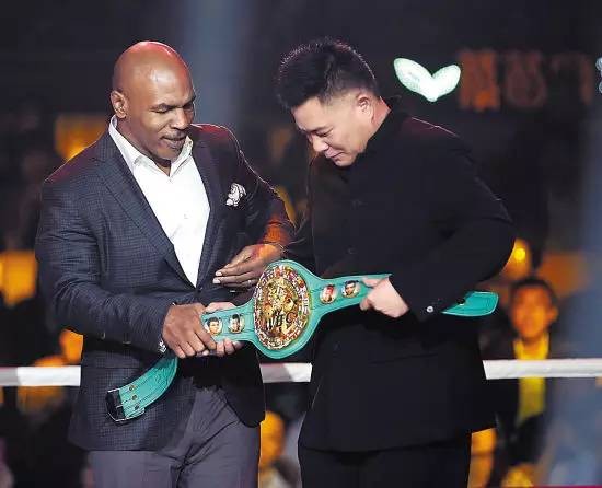 泰森赠施建祥拳王金腰带