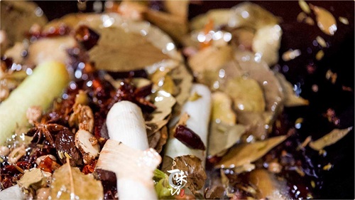 接下来我们再下入,辣椒30克 小茴香30克 黑胡椒15克 山奈30克 良姜35克 肉蔻30克 丁香5克 草果20克 桂皮30克 香叶20克 白芷35克 八角40克 白扣20克 花椒20克 加入锅中小火翻炒,因为我们餐厅用量比较大所以需要大家根据个人口味进行微调。