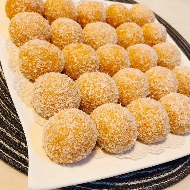 食材:300克南瓜、椰蓉适量、糯米粉500克、白砂糖适量、豆沙馅适量、油适量