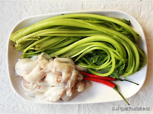 芹菜的吃法有许多种,炒,拌,配荤配素,都特别的美味,今天给大家分享一道极快手的下饭菜:芹菜炒小鱿鱼。鱿鱼,是软体海产之一,市面上有大鱿鱼和小鱿鱼之分,总体来说,营养成分都差不多,都是富含蛋白质,钙,磷,铁,钾等,只是个头不一,价格也稍有落差。像精灵今天用的小鱿鱼,简直就是白菜价格,只需要12元一斤,是不是比吃肉更加划算呢。芹菜和小鱿鱼,再配上一,两个小米椒,简单炒一炒,鲜香脆嫩,开胃又好吃。芹菜和它是天生一对,炒一炒清香开胃,下酒下饭,怎么吃都不腻,一起来看看,具体的做法吧~