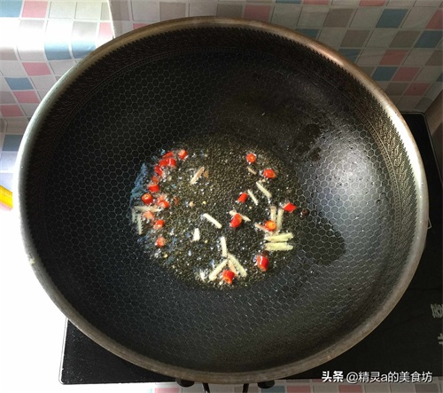 5:另起锅烧油,下小米椒姜末炝锅。