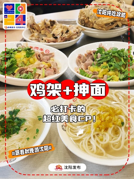 在沈阳,最热门的“鸡架初体验”便是传统美食项目“抻面+鸡架”组合,一碗抻面搭配一份鸡架,解馋又顶饱,是本地人百吃不腻的夜宵首选。